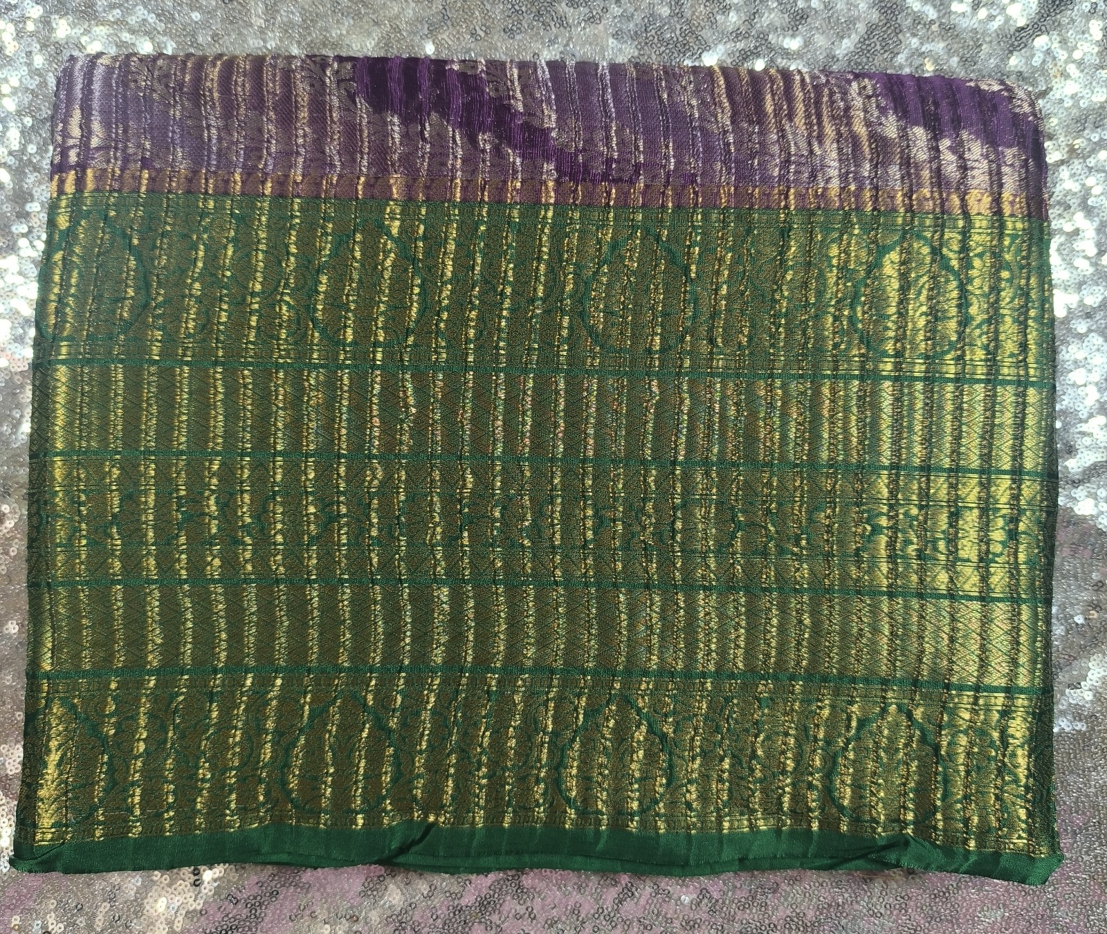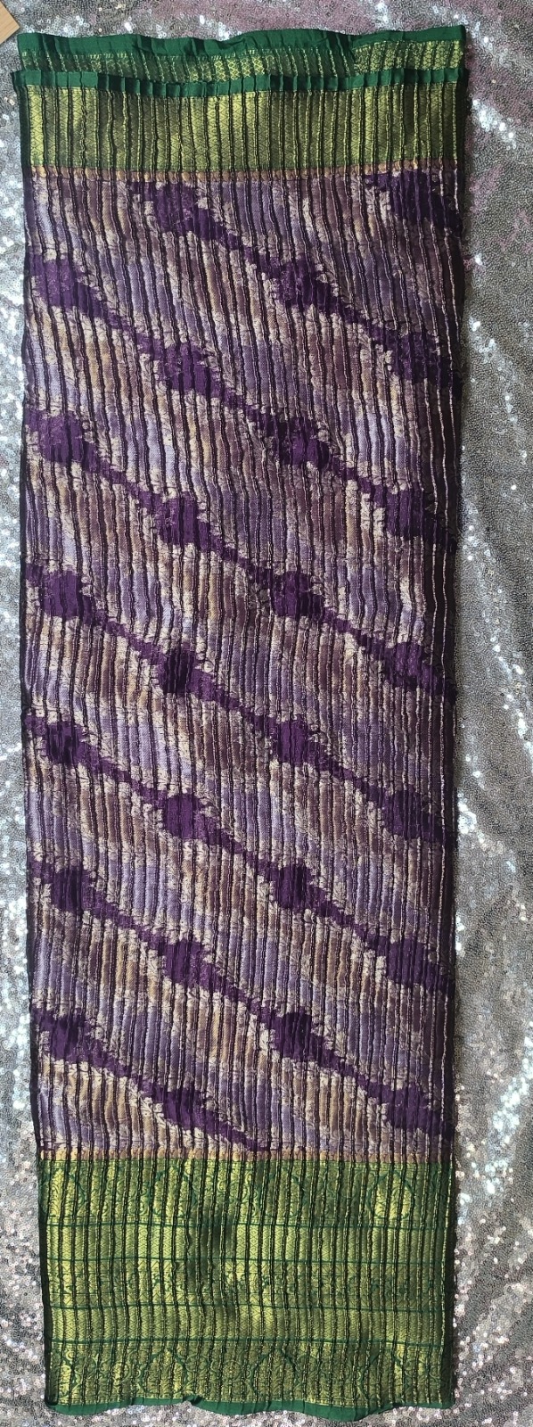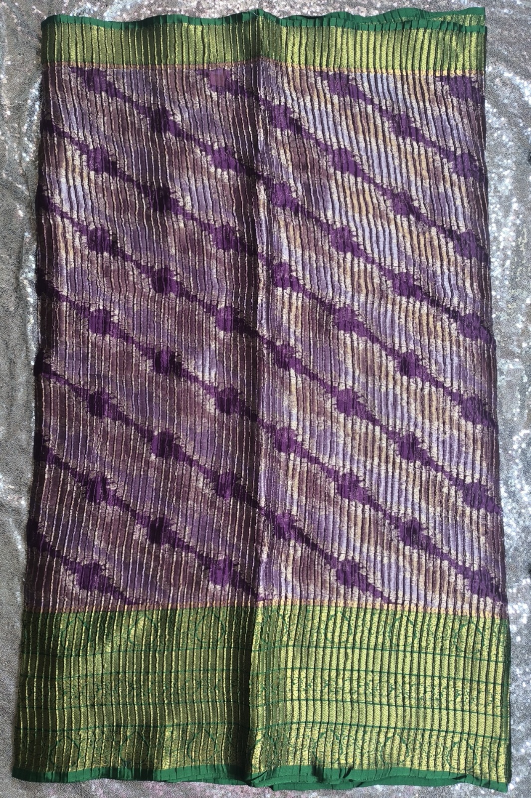 Tilfi Ranakaat Banarasi Crushed Saree – Lined Lavender with Green Border