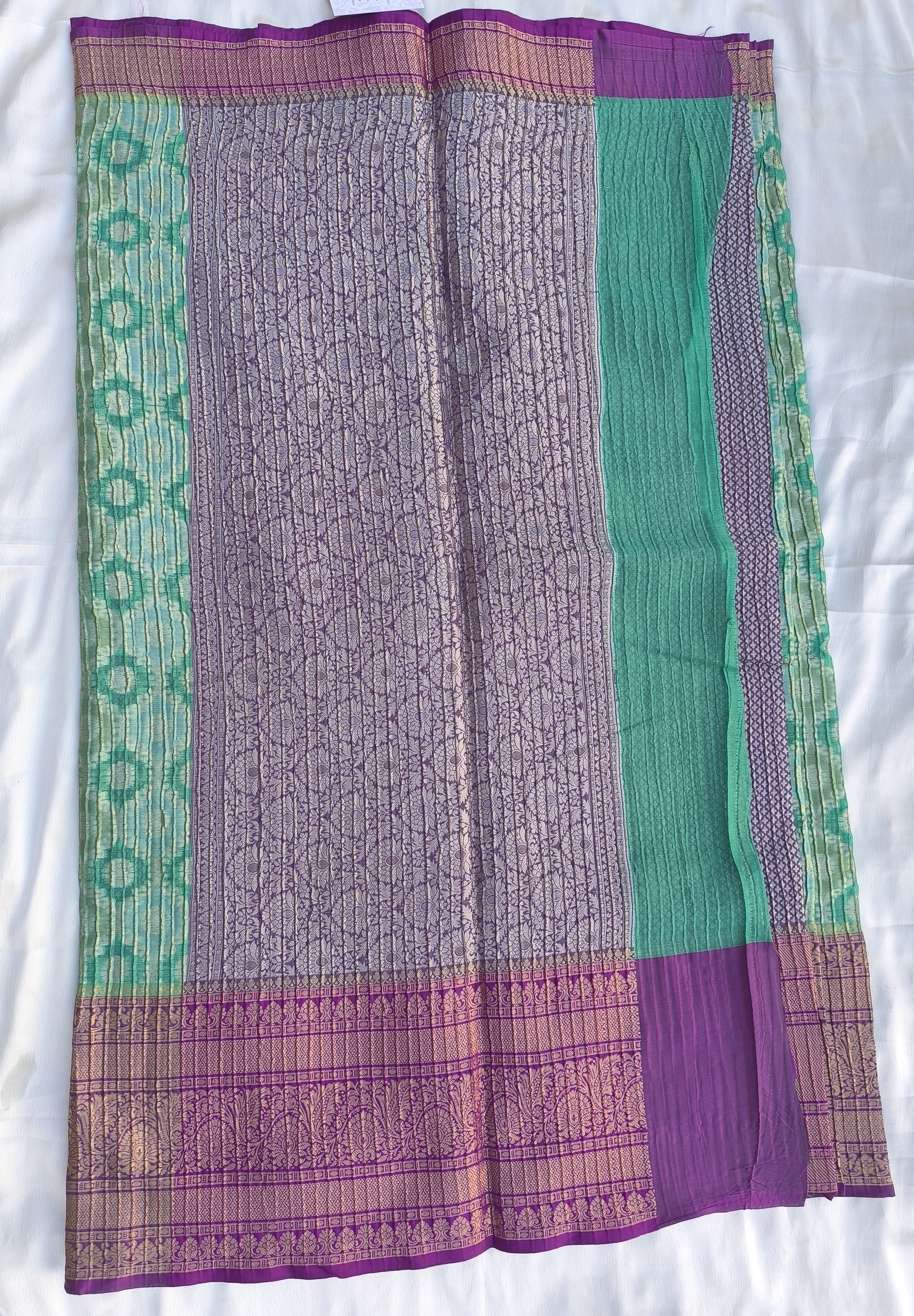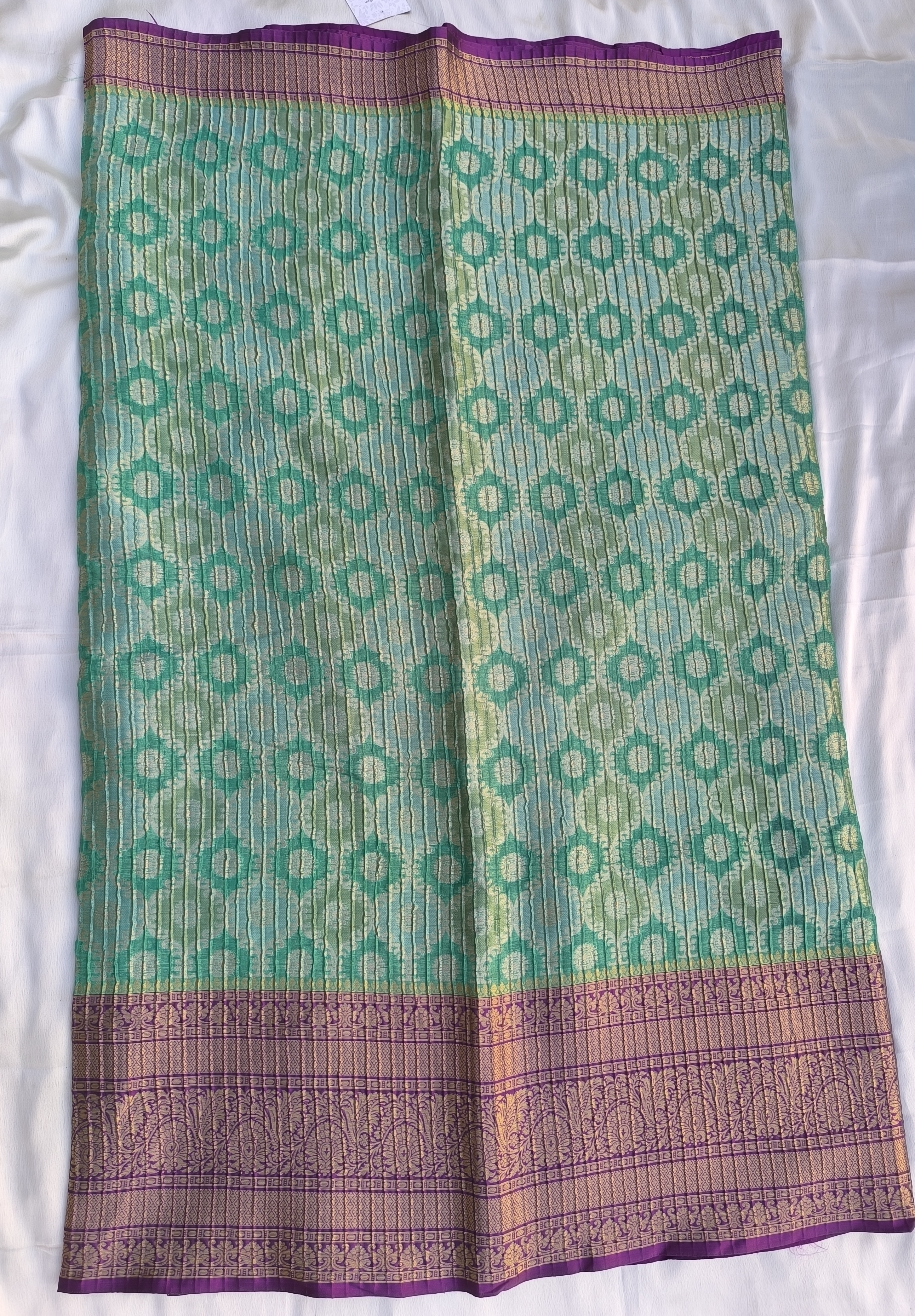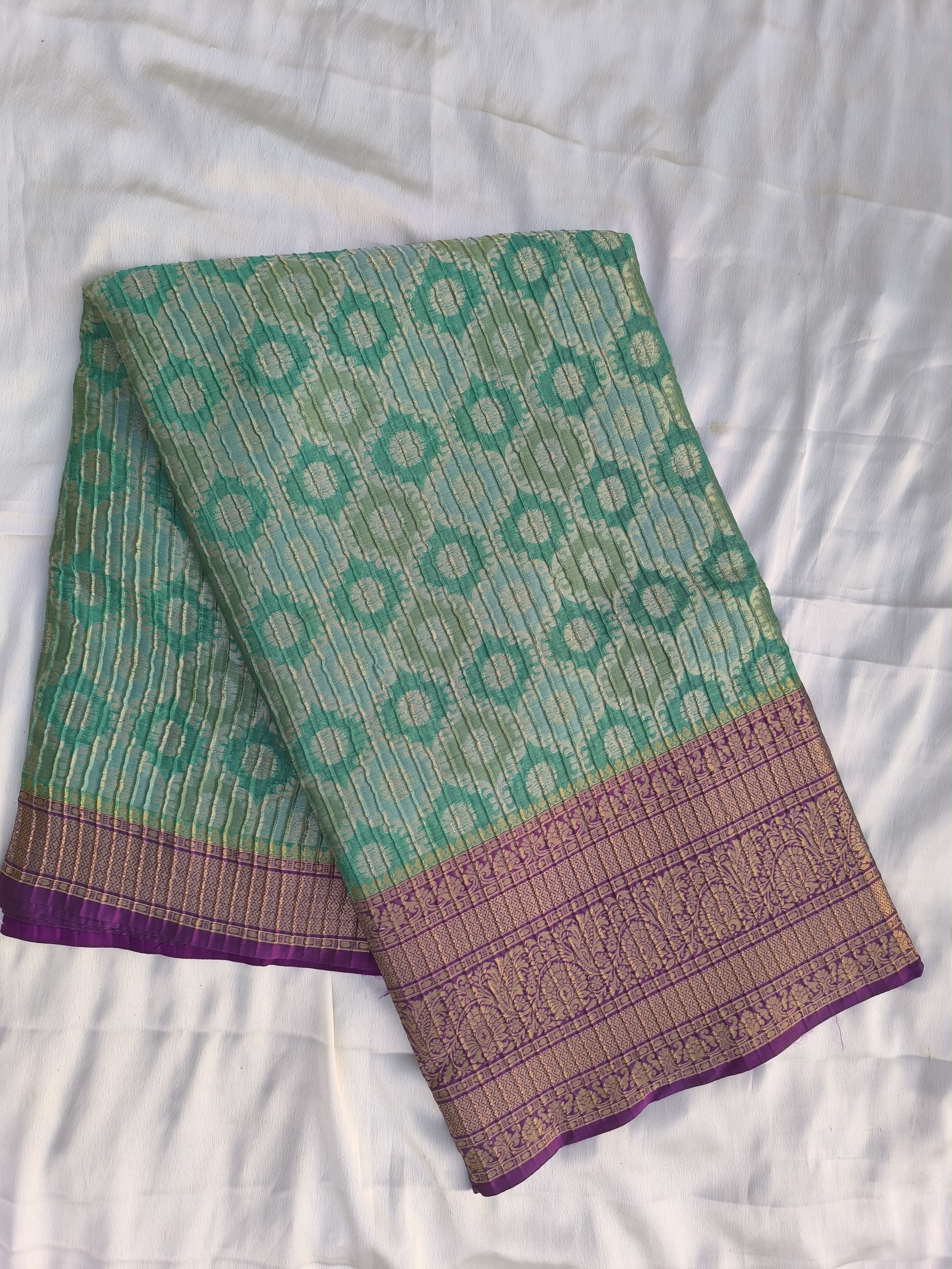 Tilfi Ranakaat Banarasi Crushed Saree – Mint Green with Purple Border
