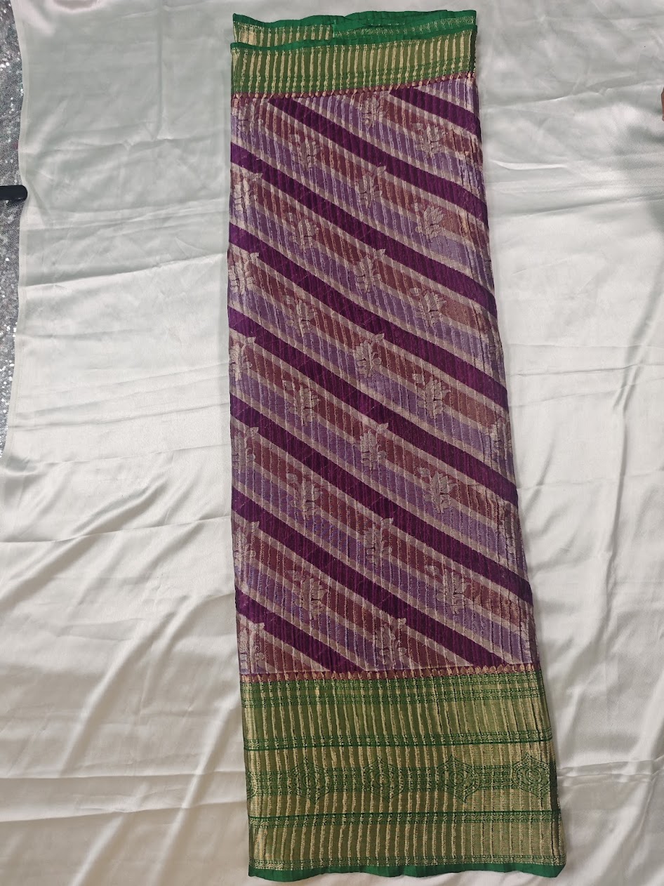 Tilfi Ranakaat Banarasi Crushed Saree – Plum with Green Border